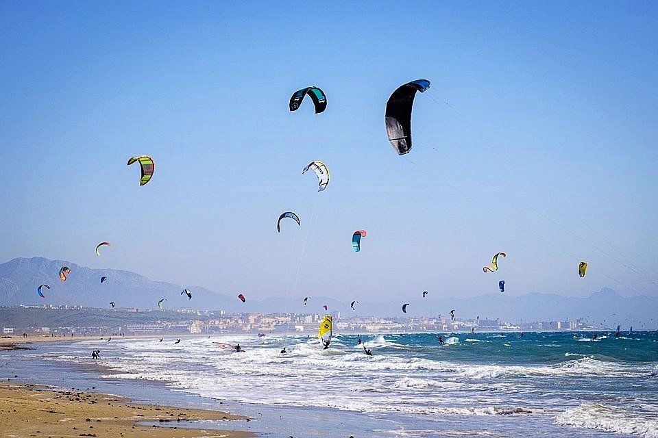 If you want to surf in the best European zone, come and practice kitesurfing in the province of Cádiz. Here you will have the ideal wind to keep your kite in the air. We move from the Bay of Cádiz to Tarifa to find the best conditions and enjoy your favorite sport. From our team of professionals you will receive all the help and attention necessary so that you can enjoy your aquatic adventure safely.